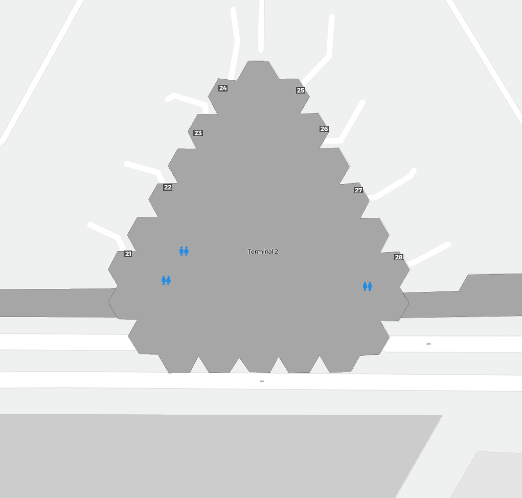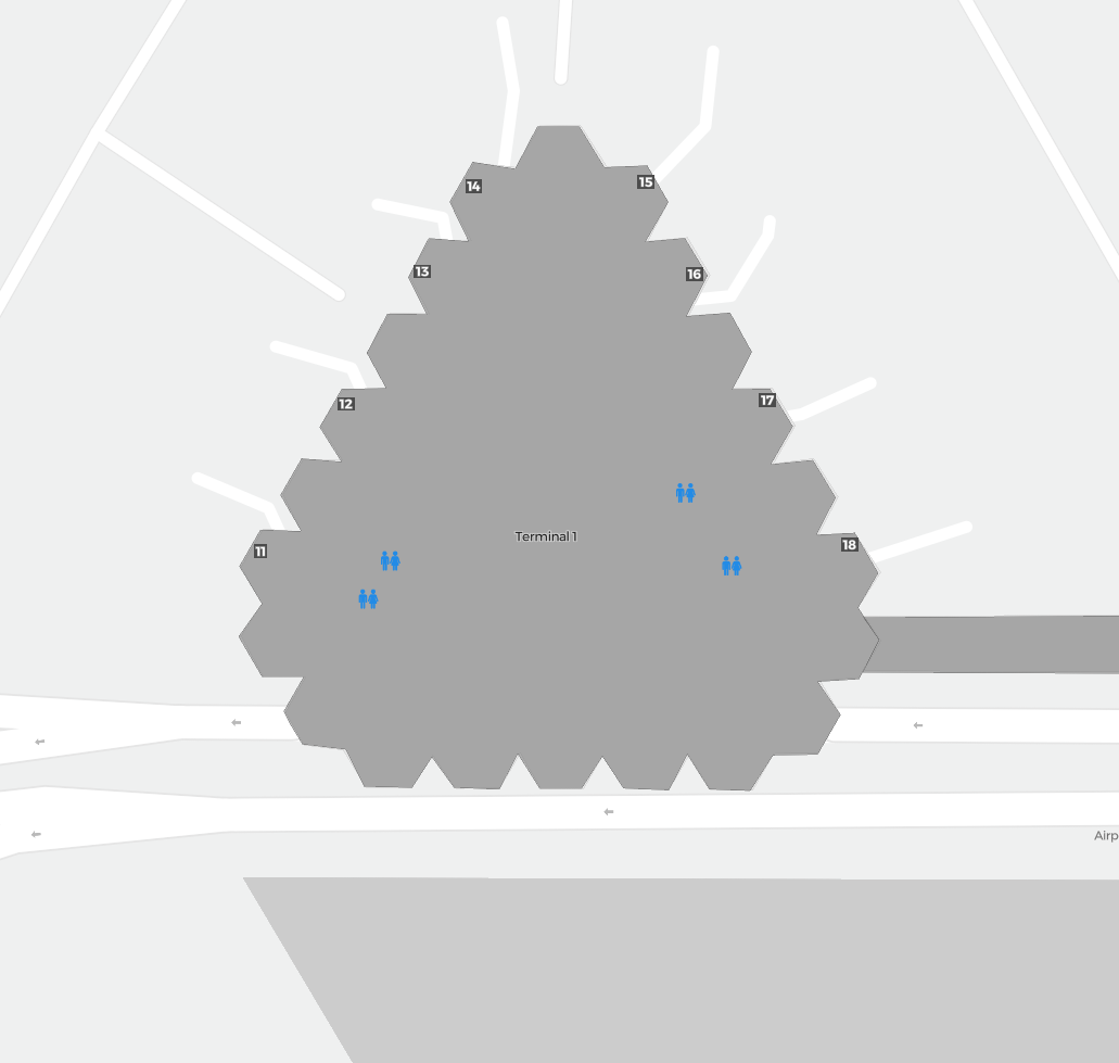 Dit is een inzoombare kaart van Riyad (RUH). De kaart geeft je een overzicht van het buitenterrein met terminals, parkeerplaatsen, en op sommige luchthavens ook details over gates, autoverhuur en andere voorzieningen bij inzoomen.