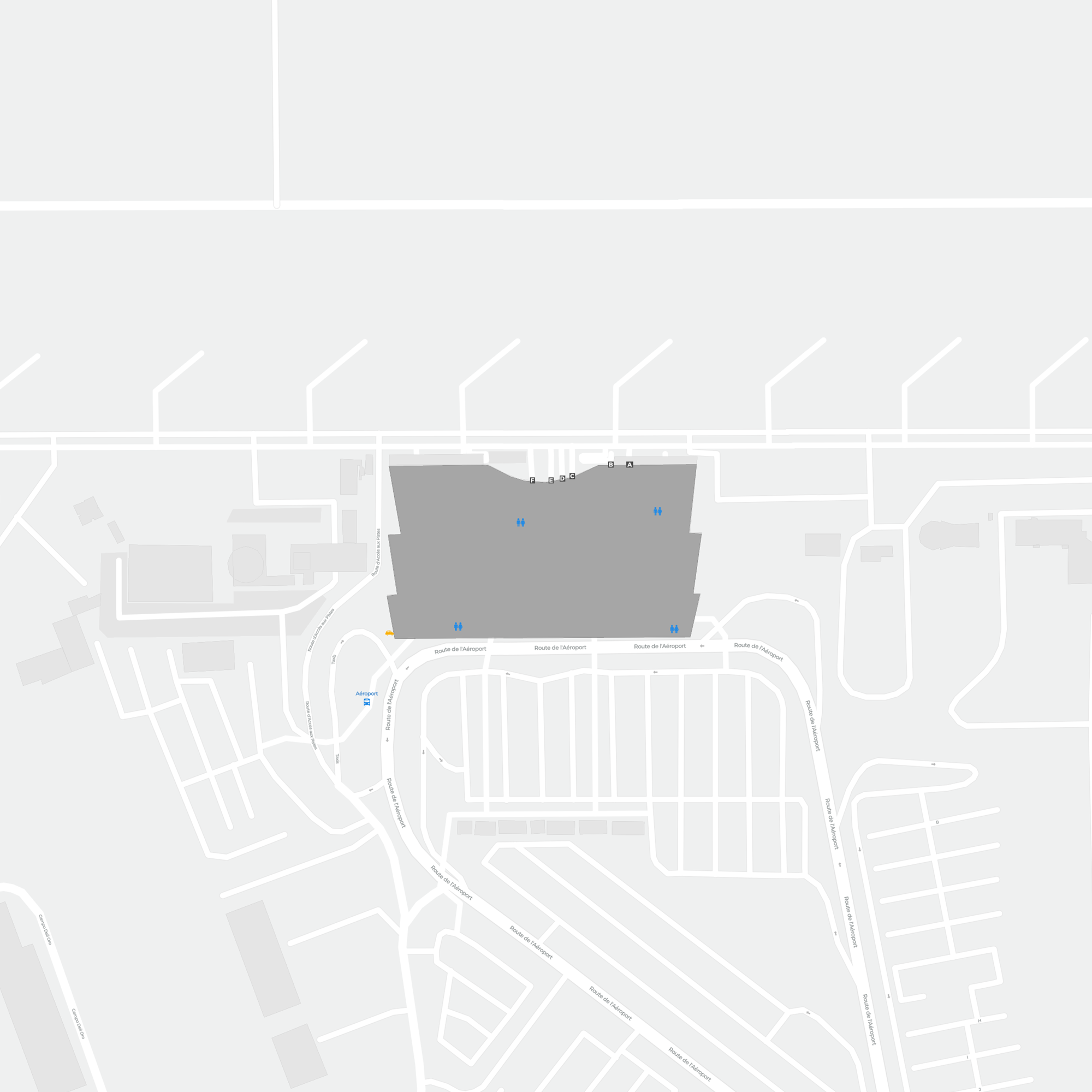 Dit is een inzoombare kaart van Ajaccio (AJA). De kaart geeft je een overzicht van het buitenterrein met terminals, parkeerplaatsen, en op sommige luchthavens ook details over gates, autoverhuur en andere voorzieningen bij inzoomen.