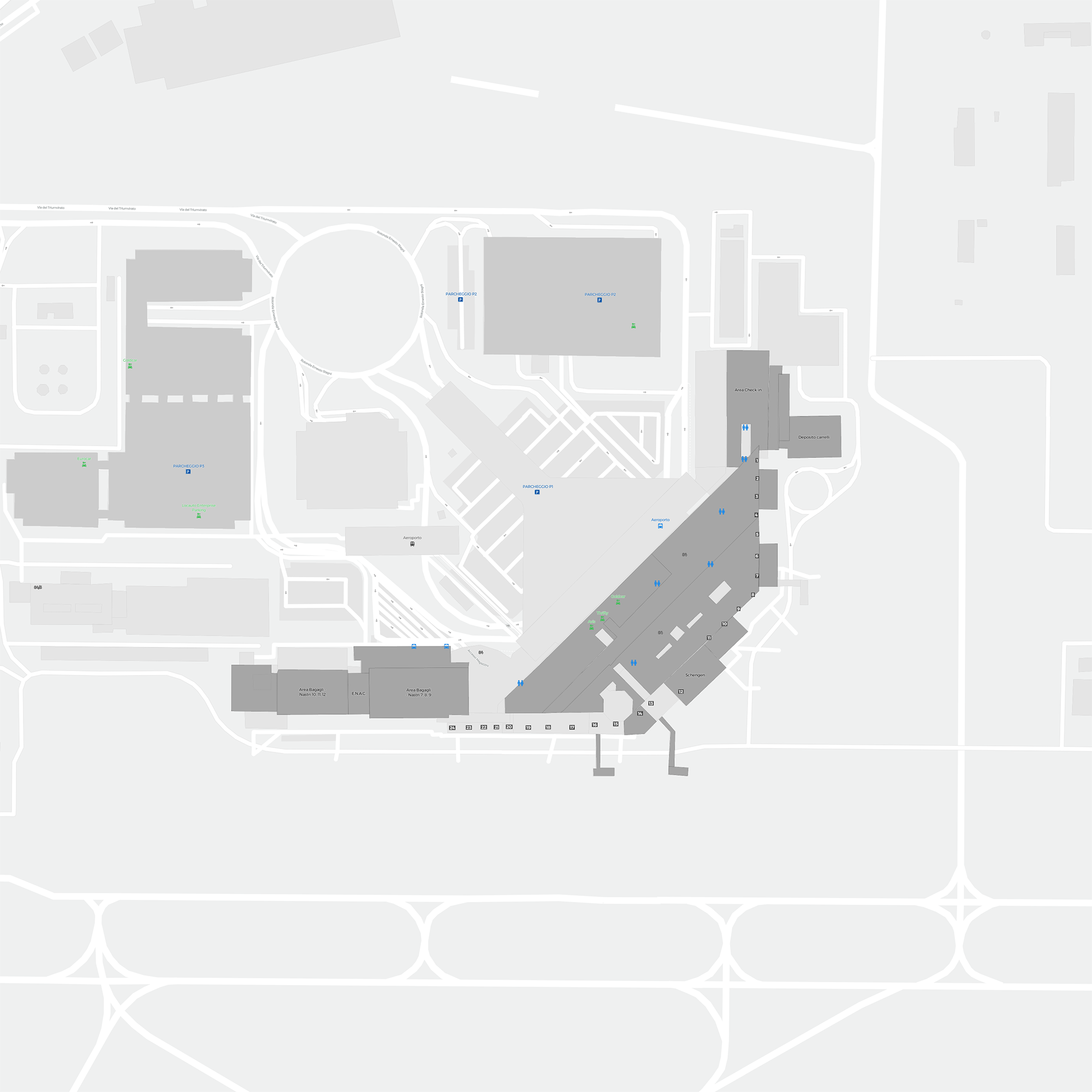 Dit is een inzoombare kaart van Bologna (BLQ). De kaart geeft je een overzicht van het buitenterrein met terminals, parkeerplaatsen, en op sommige luchthavens ook details over gates, autoverhuur en andere voorzieningen bij inzoomen.