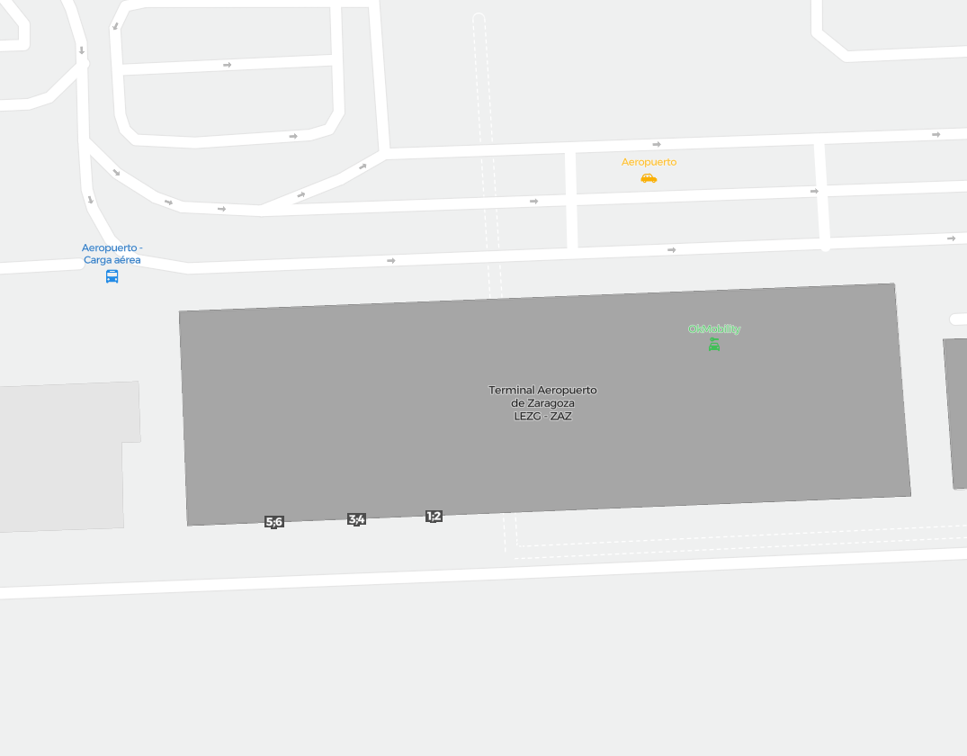 Dit is een inzoombare kaart van Zaragoza (ZAZ). De kaart geeft je een overzicht van het buitenterrein met terminals, parkeerplaatsen, en op sommige luchthavens ook details over gates, autoverhuur en andere voorzieningen bij inzoomen.